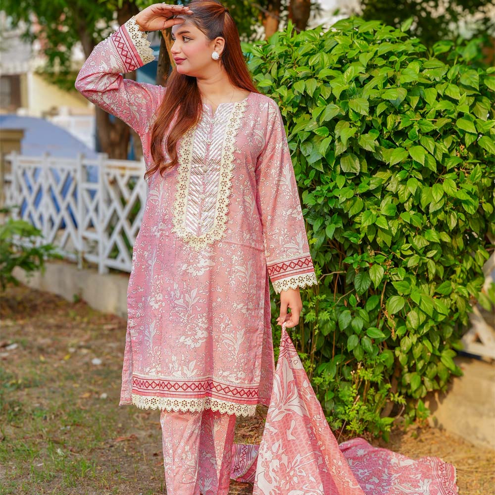 Doria Lawn 3pc Intricate Neckline Designed